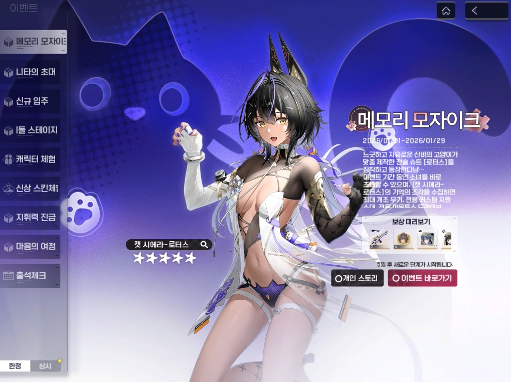 치토스 스노우브레이크 복귀했음요 [일반] 작성일시 : 2026. 01. 02 (18:32) 조회 : 253 / 댓글 : 0 캣 시에라 로터스 이번에 신캐 배포한다길래바로 복귀해서 이벤트 스토리부터 밀어보는중인데일단 스킬 써보니까 고양이 폭탄 같은 거 날려서주변 몹 다 에어본 시키는데 스킬셋 깔끔해요 배포니까 접속해서 받아두시길 3추천 글쓰기스크랩 신고