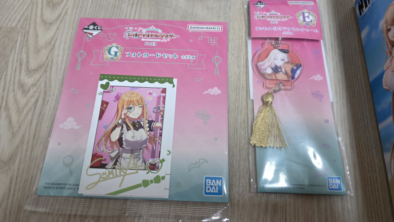 먼저 구입한 굿즈는 학원 아이돌 마스터 제일복권 굿즈들인데 제일복권 2회 뽑았더니 포토카드 세트와 키링이 당첨 되었습니다.
