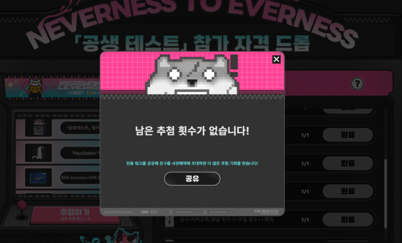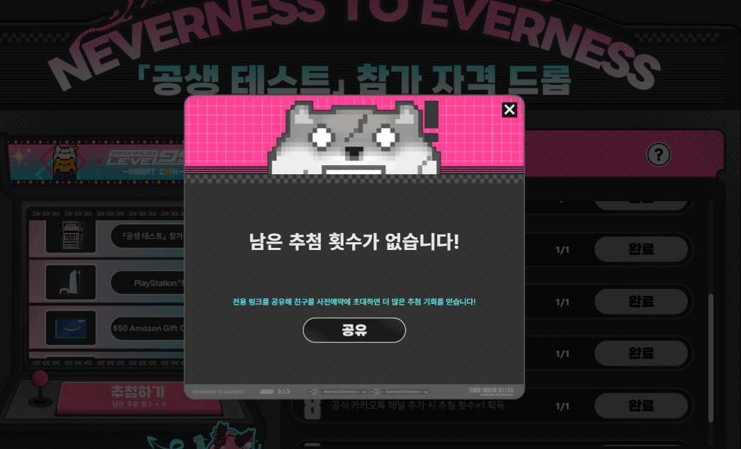 치토스 이환 테스트 하고싶다... [일반] 작성일시 : 2026. 01. 08 (18:27) 조회 : 352 / 댓글 : 1 이환 사전예약열리고 테스트 모집하던데일단 신청을 둘다 해뒀거든요 공홈에 미션 깨고 추첨해서경품이랑 테스터 확정 당첨권도 나오던데열몇번 시도해서 다 꽝나옴 ㅠㅠㅠ 이환 해보실분들은 이거 한번 돌려보세요 3추천 글쓰기스크랩 신고