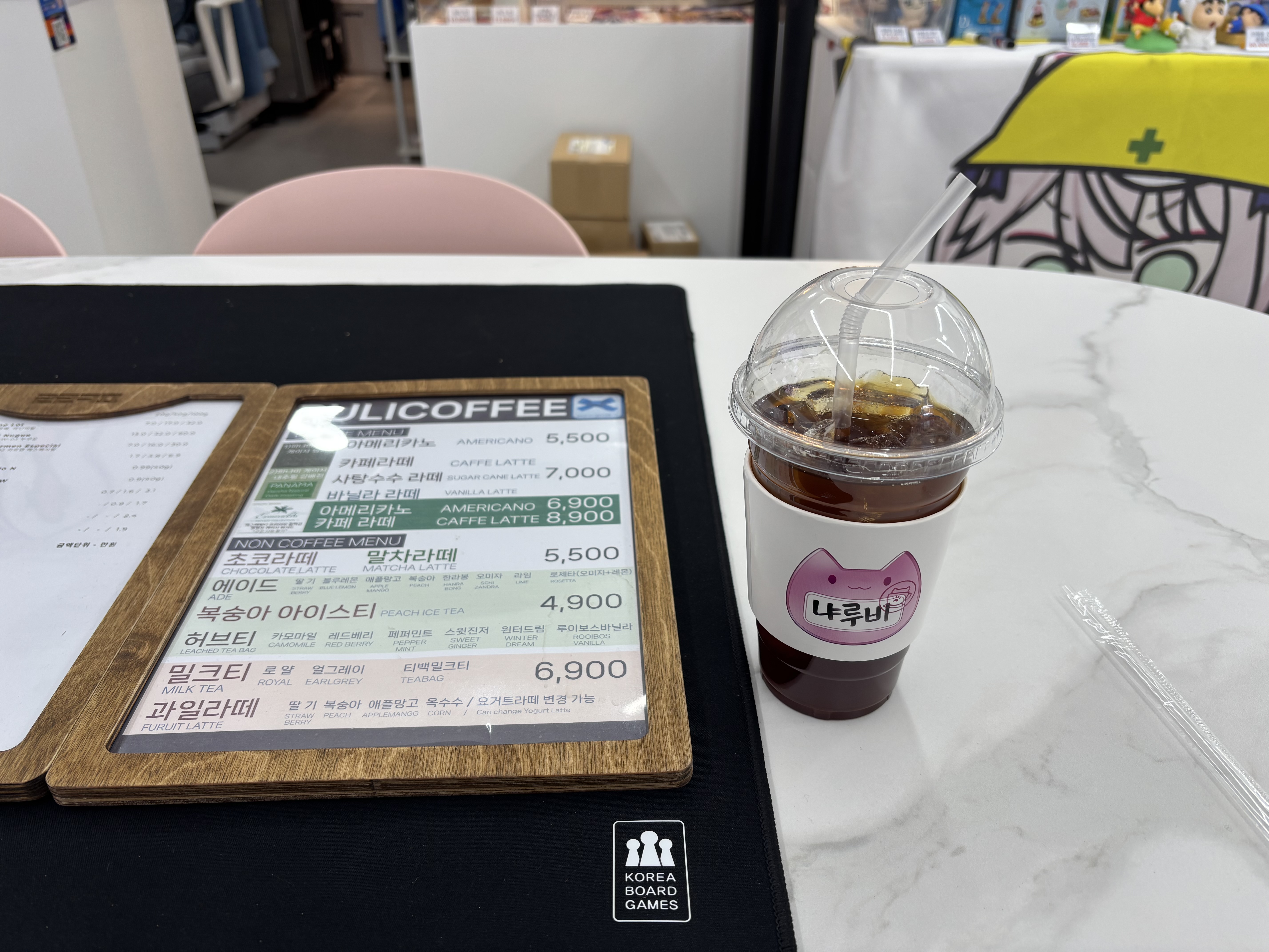 매장 내부에는 가챠폰과 이치방쿠지가 있고 커피를 먹는 공간도 있습니다