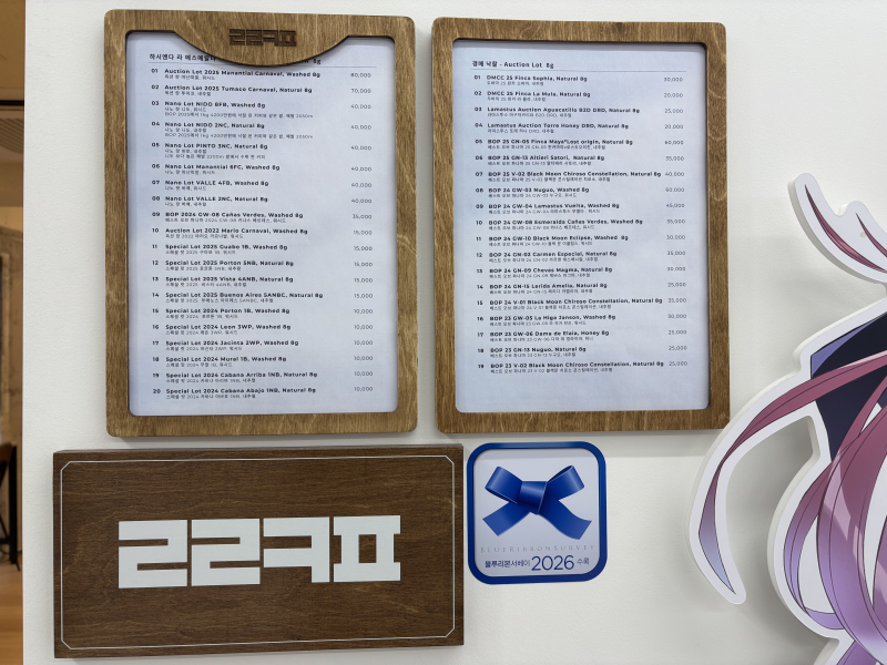 냐루비가 설명하길 1번 원두는 산미 2번 원두는 씁쓸한 맛과 바디감을 강조한 맛이라고 하네요