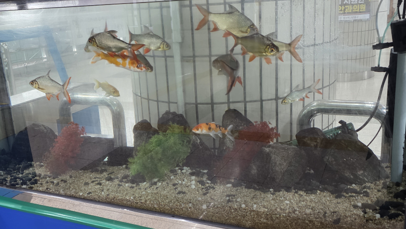 그리고 제가 지하철역을 가끔 이용하는 편이라서 모든 대구 지하철역에 수족관이 다 있는 건지 모르겠지만 제가 가끔 이용하는 지하철역에 수족관이 있길래 직접 사진 찍어봤습니다.