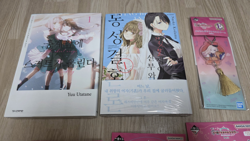 평범한송 오늘 구입한 만화책과 굿즈! [굿즈] 작성일시 : 2026. 02. 07 (19:50) 조회 : 155 / 댓글 : 2 오늘 낮에 시내에 가서 구입한 만화책과 굿즈를 올려봅니다!구입한 만화책은 백합물이고 백합 만화책 2권을 구입했습니다.그 다음 구입한 굿즈는 학원 아이돌 마스터 제일복권 굿즈들인데 키링 1개, 뱃지 2개, 아크릴 스탠드 1개인데요.개인적으로 제일복권에 원하는 굿즈가 당첨 안되서 아쉽더군요. 4추천 글쓰기스크랩 신고