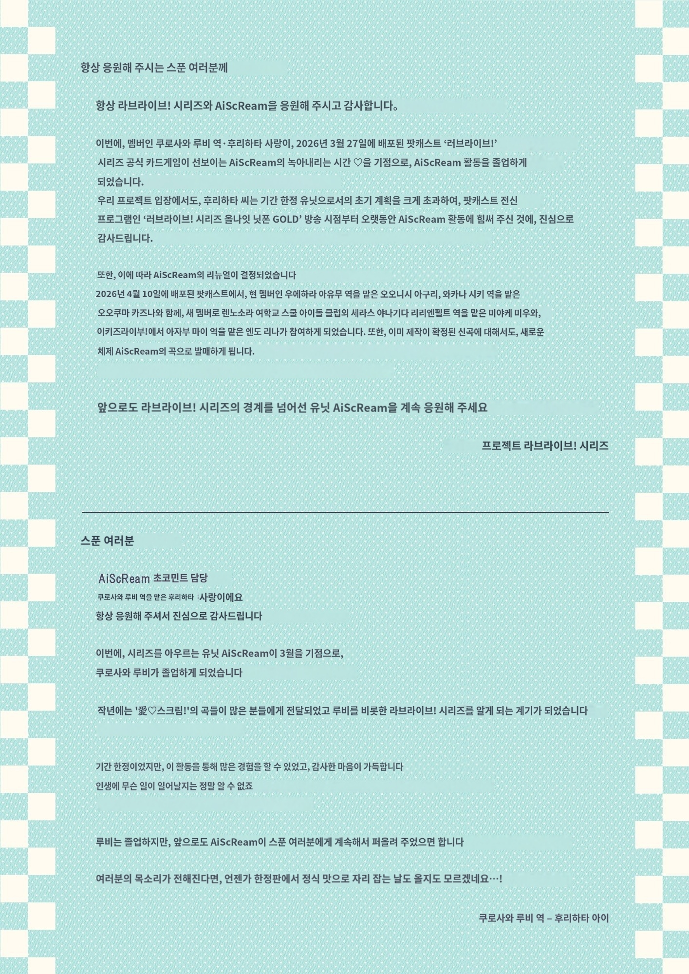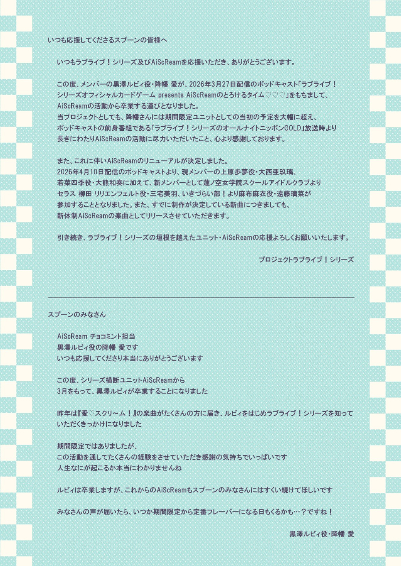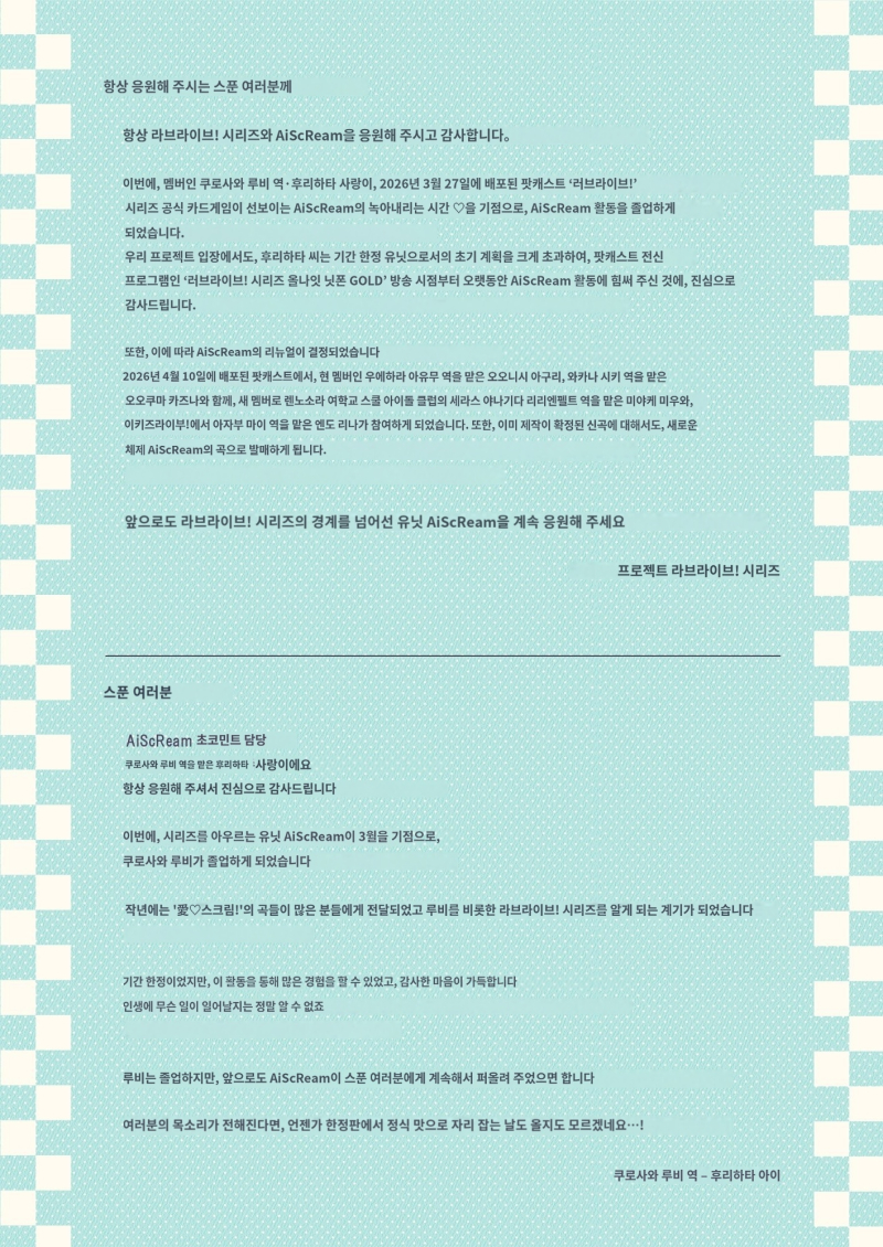 안달뷩 오늘 러브라이브 시리즈 아이스크림 멤버들의 안타까움 소식...😭😭💕💕(번역 오역주의) [일반] 작성일시 : 2026. 02. 17 (18:52) 조회 : 600 / 댓글 : 10 출처(링크) : https://x.com/i/status/2023683850631884962 6추천 글쓰기스크랩 신고