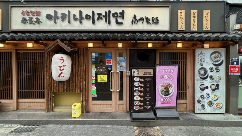 명동의 저렴한 우동집 아키나이제면
