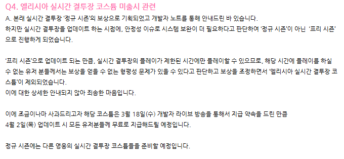 고기반찬 아래서 소통이 중요한거긴함 [일반] 작성일시 : 2026. 03. 30 (17:10) 조회 : 183 / 댓글 : 0 세나리 저번 라방에서 나온것들 중에서솔직히 어떤 상황인지 말해주면 다 납득갈만한애들이었음엘리시아 코스튬 안나온 이유도 그렇고 영웅 인플레도 이제 잘 잡을 수 있게 개선한다고도 했고이래서 소통은 꾸준히 해야되는거같음 4추천 글쓰기스크랩 신고