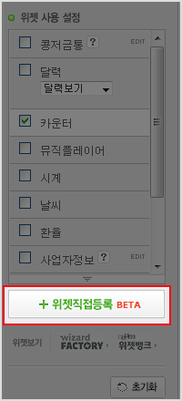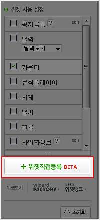 2. 위젯직접등록 메뉴를 클릭합니다.
