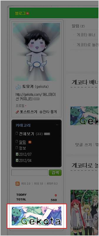 5. 아래와 같이 게코타 배너가 추가된 모습니다.