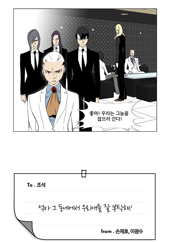 릴레이만화 인데요.노블레스 다음분이 조석님인데 이제 조석님은 노블레스의 고퀄 캐릭들을 '잘'그려야 하는거죠.노블레스 다음 사람이 제일 고생임.ㅇㅅㅇ