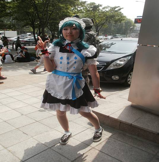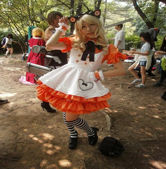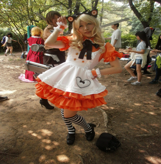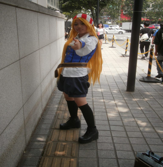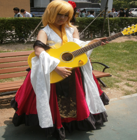 옷차림 이뻐서 찍은것입니다. 근대 왠 기타인지 싶어서 무슨 캐릭인지 궁금하군요. ㅋ 조금 여자 해적 스타일처럼 보여서 부탁후 찍어봤습니다. 정확하게는 잘 모르겠군요.