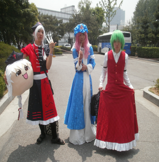 좌측에 꼐신분은 왜 봉지와 가방을 들고 계신지를 모르겠군요. 찍힐려는건지 피한것인지... 제가 봐서는 조금은 여장남 같습니다. 옷차림은 여장인데 얼굴표정 행동이 남자 같습니다...
