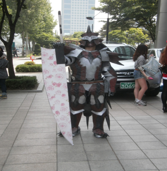 장미칼 전사님 입니다. 대단하신게 그 복장으로 몇시간동안 그곳에 계속 계셨단것이 대단 합니다. 단체 사진을 찍고 있길래 저도 찍은 것입니다. 유명하니 다들 아실거라 생각 합니다.