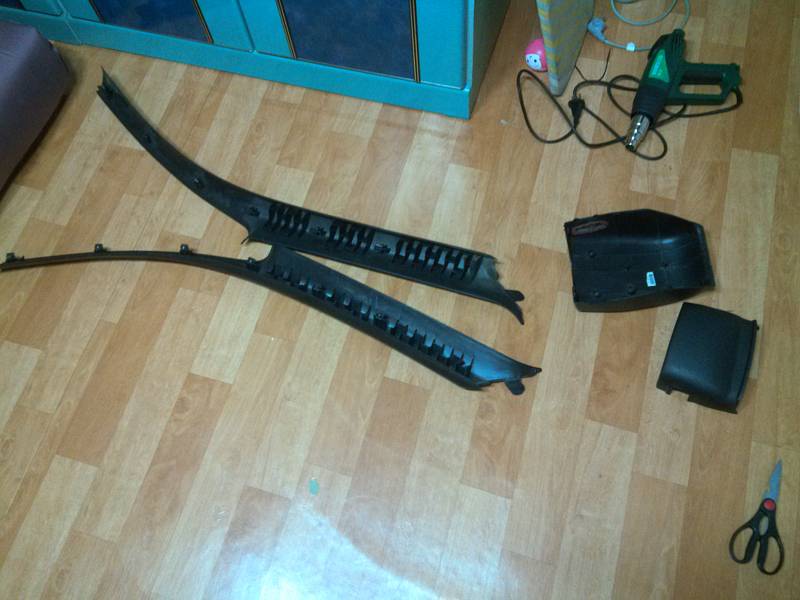 연습용으로 문 윗부분의 내장재도 뜯어냄