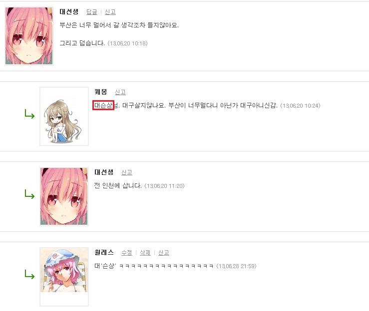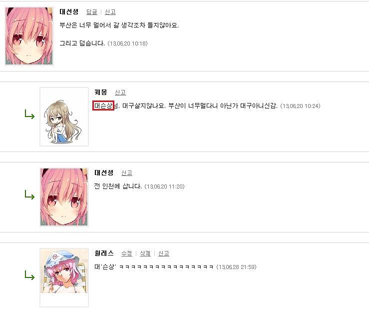월레스 으따, 우덜 슨상님이 여기 계셨당가? [애니] 작성일시 : 2013. 06. 28 (22:28) 조회 : 4,937 / 댓글 : 6 퀘몽찡 안목 쩐당께요잉 그동안 우덜 '대'슨상님을 못 알아봤당가~ 근디........대'슨상'님인가'대'슨상님인가 헷갈린당께 앞으로 대선생 찡은 '대'슨상님이다슨상님 존함을 부르는 건 아닝께 걱정하덜 마쇼잉~ ㅋㅋ 대선생 찡 걸렸다. 이제부터 대슨상님(?) 0추천 글쓰기스크랩 신고