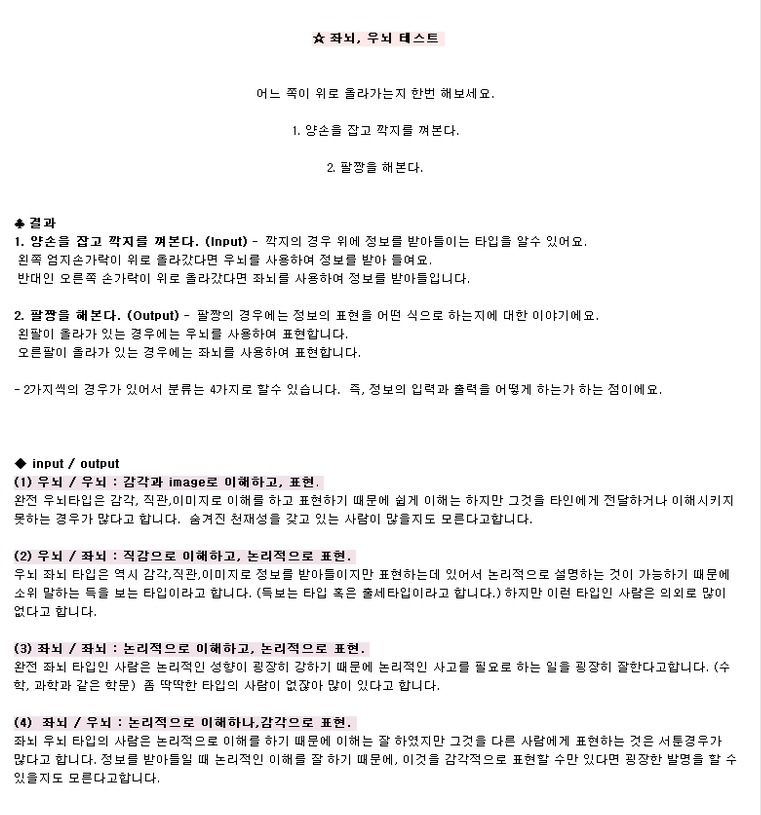 바람 좌뇌, 우뇌 테스트 [애니] 작성일시 : 2013. 07. 04 (19:05) 조회 : 2,504 / 댓글 : 11 좌뇌 / 우뇌 표현이 서툰건가 ;ㅅ; 0추천 글쓰기스크랩 신고