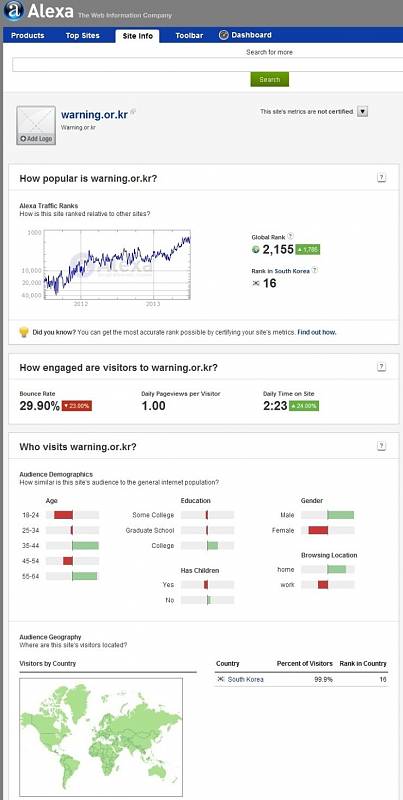 노예 대한민국 랭킹 16위 사이트 [애니] 작성일시 : 2013. 07. 14 (03:35) 조회 : 2,908 / 댓글 : 2 http://warning.or.kr/ < 0추천 글쓰기스크랩 신고