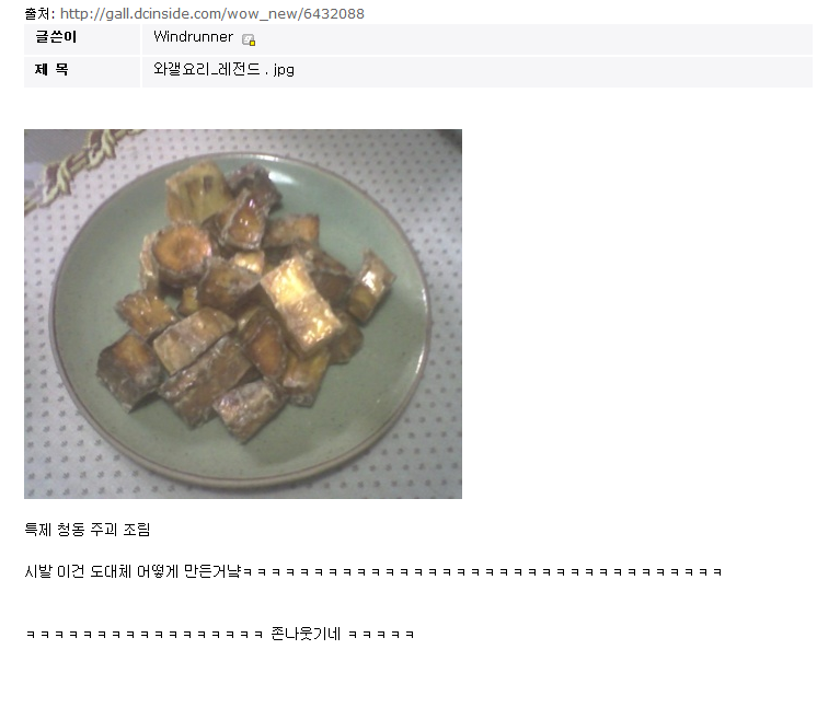 Dominic 요리계의 혁명 [애니] 작성일시 : 2013. 08. 20 (21:57) 조회 : 5,265 / 댓글 : 7 근섬유 잡채 트럴 닭다리 저그 크립 빛나는 청동 주괴ㅋㅋㅋㅋㅋㅋ 요리로 연성했다! 0추천 글쓰기스크랩 신고