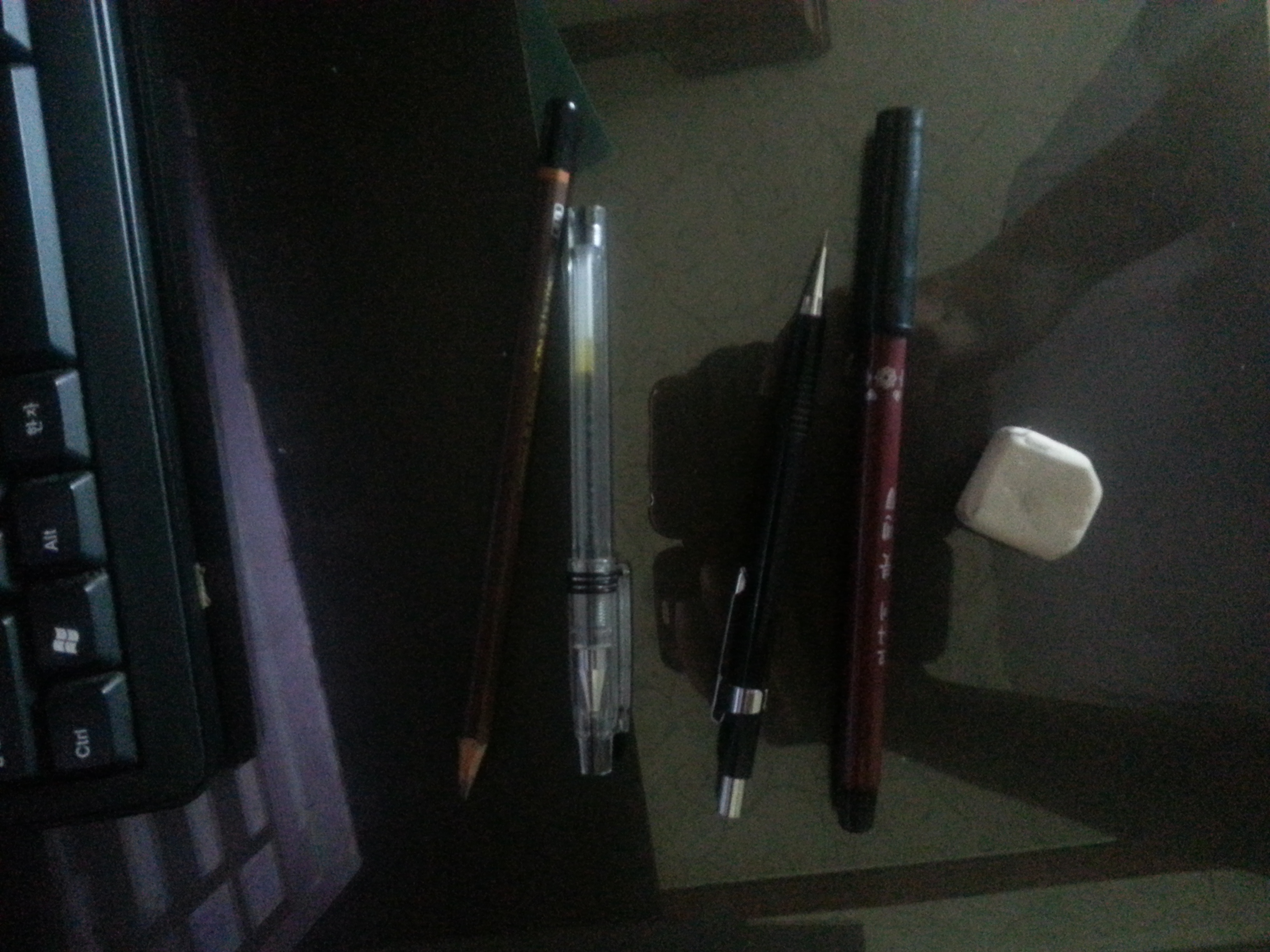 위와같이 그릴도구는 볼펜,지우개,붓펜,샤프,4B연필입니다