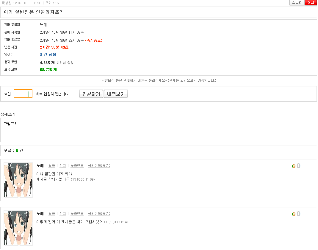 세희 코인경매에 노예님이 올리신거 [애니] 작성일시 : 2013. 10. 30 (19:10) 조회 : 2,798 / 댓글 : 3 이거 사면 노예님을 가질수 있는 건가요? 0추천 글쓰기스크랩 신고