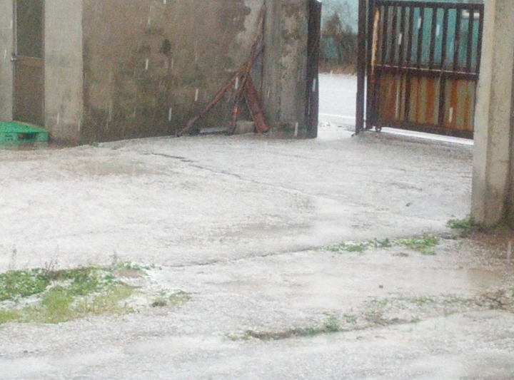 저기 저 하얀색 막대기 같은게 내리고 있는 우박!