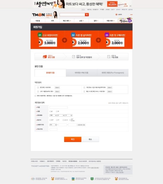 지금 티몬에서 가입하면 5000원 적립금을 줍니다.
