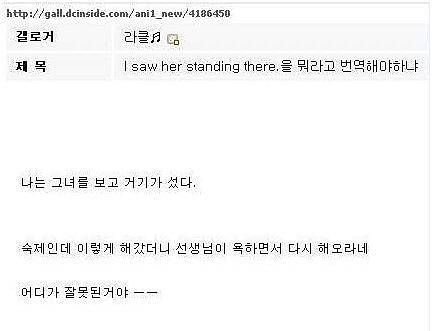 동사가 Saw지 standing은 아니지요 ㅋㅋ 동사 구분 못해서 해석 Fail