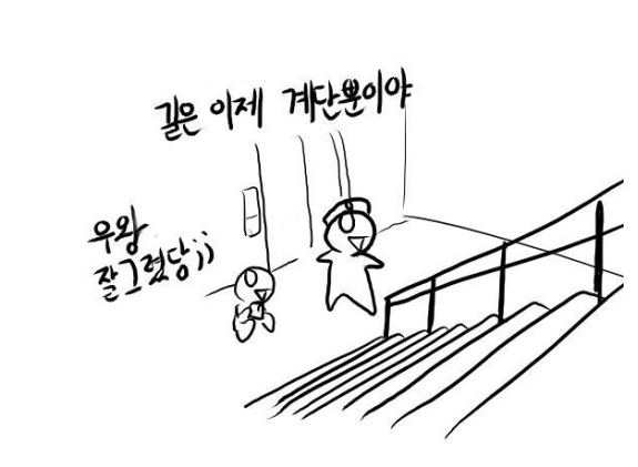 그렇게.. 미련하게 눈도 안 털고.. 더 빨리 올라가보겠다고.. 계단 2칸씩 밟고 올라가다가..