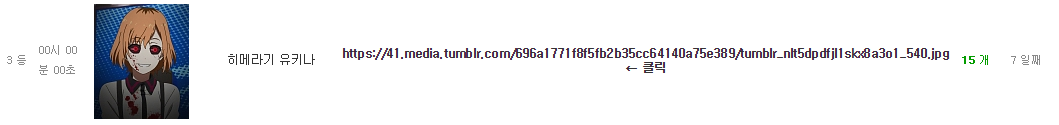 MoonIRIs 변태 아찌 죽이고 지옥가겠습니다. [애니] 작성일시 : 2015. 03. 27 (00:10) 조회 : 4,748 / 댓글 : 12 오늘 올린 변태 아찌의 링크... 들어가 보니 ..........................죽이겠습니다. 변태 아찌 죽이고 지옥가겠습니다. 감히 쿠루미 여신님을!! 0추천 글쓰기스크랩 신고