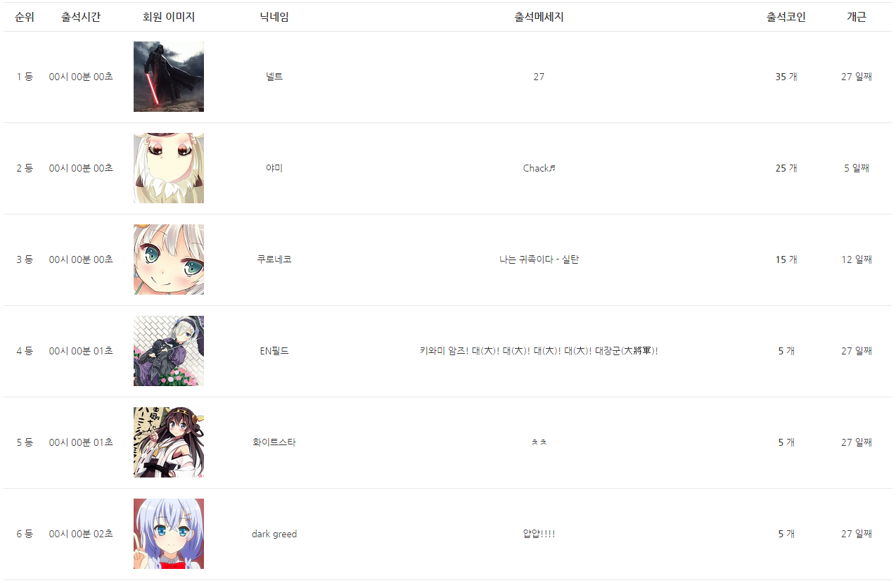 MoonIRIs 오늘의 출석부~? [애니] 작성일시 : 2015. 04. 16 (00:04) 조회 : 2,921 / 댓글 : 8 어라라~ 11시 59분 59초에 Enter를 쳤는데 00시 00분 02초가 되어 있네요~~ 흐므... 고로! 오랜만에 6위 안에도 못들었습니다! 오늘의 1등은 넬트 아찌군요!! 그것보다... 프사에 칸코레가 많다! 2등에 야미님은 홋포, EN필드님은 하마카제, 화이트스타님은 콩고!! 칸코레가 잔뜩!! P.S 일단 찍히지는 않았지만 오늘의 대사인 "내세엔 역시 전함으로 부탁드립니다… 꼴까닥."은 키타카미의 굉침대사! 굉침대사인데도 코믹...!! 0추천 글쓰기스크랩 신고