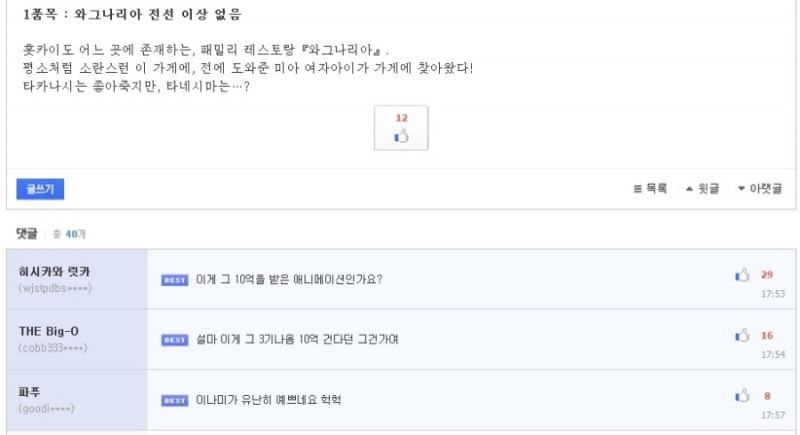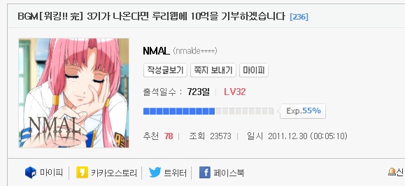 타카후지 카코 워킹 3기가 나온다면 루리웹에 10억을 기부하겠습니다 [애니] 작성일시 : 2015. 06. 13 (20:10) 조회 : 4,764 / 댓글 : 4 http://bbs2.ruliweb.daum.net/gaia/do/ruliweb/family/230/read?bbsId=G005&articleId=13494466&itemId=75BGM[워킹!! 完] 3기가 나온다면 루리웹에 10억을 기부하겠습니다 | Daum 루리웹bbs2.ruliweb.daum.net본문으로 이동 그리고 오늘 올라온 글그래서 ~ 언제줄건데요!!근데 저사람이 히메라기이면 소오름끼칠듯! 0추천 글쓰기스크랩 신고