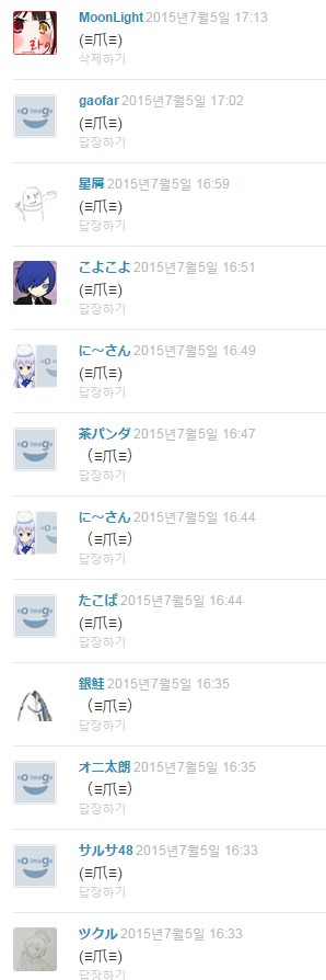 MoonIRIs 흔한 픽시브의 단결력 [애니] 작성일시 : 2015. 07. 05 (17:17) 조회 : 6,910 / 댓글 : 7 픽시브에 올라온 이 만화!! 그리고 그 만화에 달리기 시작한 댓글들!! 한자로 표현되는 고야의 표정들ㅋㅋㅋ 몇몇 스탬프들 빼고는 죄다 이 이모티콘이 댓글을 차지하고 있어욬ㅋㅋㅋ 출처(링크) : http://www.pixiv.net/member_illust.php?mode=medium&illust_id=51254038 3추천 글쓰기스크랩 신고