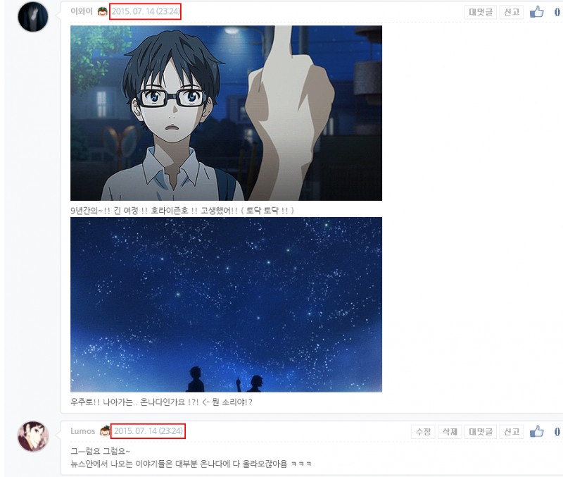 에..에에에에에에에!?! 저..정말...이에요 !! 타드님과~ 댓글을 쓴 시간이.. 똑같아요!! >- < !