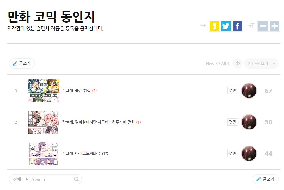 MoonIRIs 동인지 게시판이 추가 되었군요? [애니] 작성일시 : 2015. 08. 21 (17:51) 조회 : 7,772 / 댓글 : 3 이히히!! 동인지 게시판이다!! 쌓아둔 동인지들을 풀을 시간이 왔군요!! 건전한걸로 40개정도 쌓아뒀으니 조금씩 풀어야죠!! 3추천 글쓰기스크랩 신고