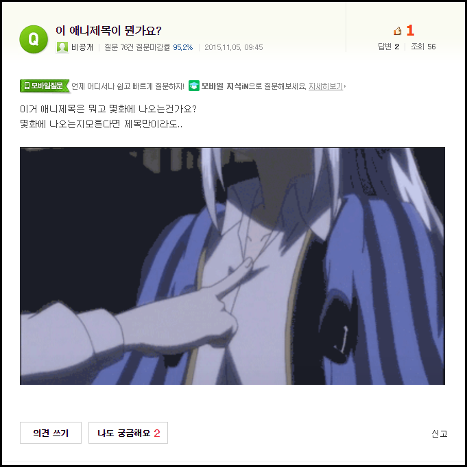 토모키 제목이 무엇일까요? [애니] 작성일시 : 2015. 11. 06 (10:51) 조회 : 2,812 / 댓글 : 3 정답은 출처에~!! 출처(링크) : http://kin.naver.com/qna/detail.nhn?d1id=3&dirId=304&docId=237903906 1추천 글쓰기스크랩 신고