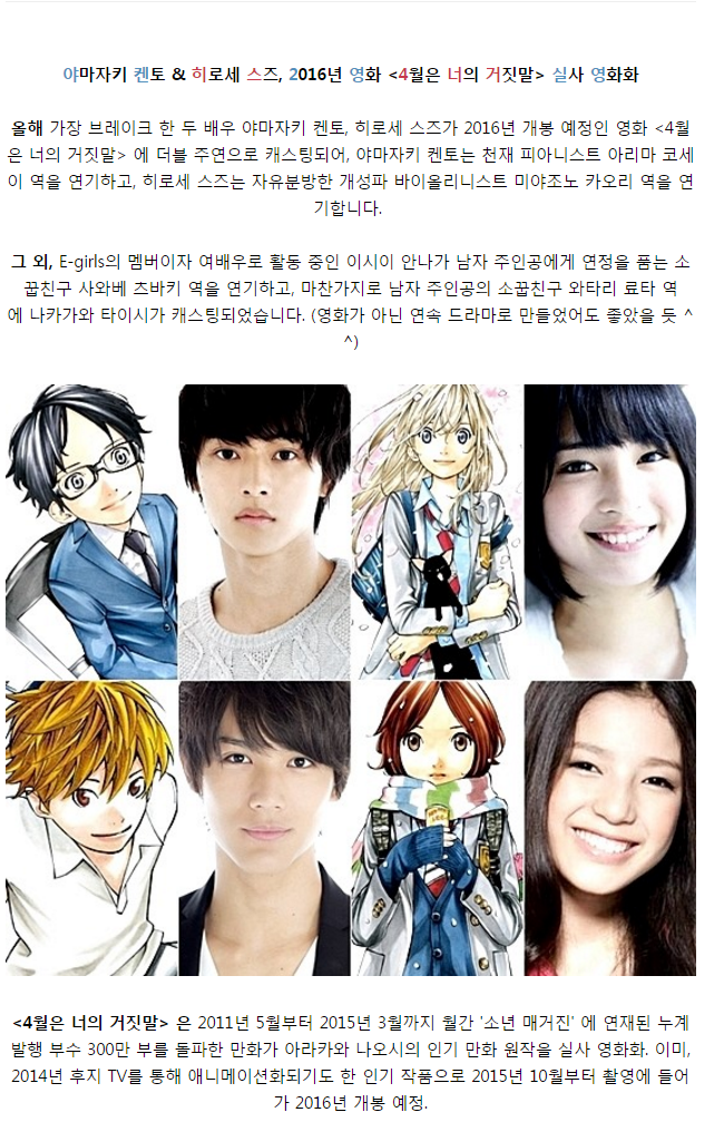 시라이쿠로코 음.. 충격이군요 [애니] 작성일시 : 2016. 04. 21 (22:41) 조회 : 2,814 / 댓글 : 7 4월이 영화가 된다니.... 흠... 케릭터 특성 잘 잡으면 볼만할듯... 2추천 글쓰기스크랩 신고