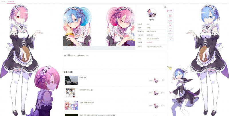 여리니 프로필 페이지를 바꿔 봤는데.... [애니] 작성일시 : 2016. 04. 23 (17:44) 조회 : 2,450 / 댓글 : 3 리뉴얼 해봤는데 괜찮나 모르것네... 나름 마음에 들긴 한데...... 2추천 글쓰기스크랩 신고