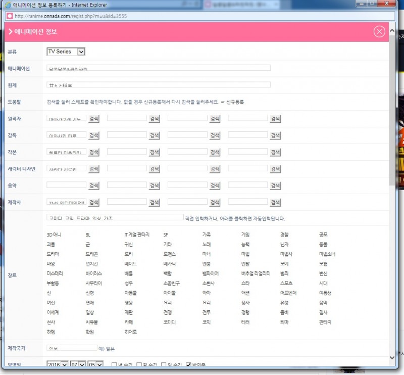 ZEN 애니정보 부분도 그렇고.... 모든것이 이상한 느낌이예요.... [애니] 작성일시 : 2016. 08. 30 (08:18) 조회 : 2,059 / 댓글 : 0 이미지는 일단 애니 자체 정보 수정이지만....오늘 에피소드를 등록하는데 에피소드도 저런 상태이더라고요....글씨들이 다 내려가서 마우스로 한곳을 클릭하면 잠깐 글씨가 제대로 보이게 올라오고....마우스를 떼면 다시 저 상태가 되네요...이 싸이트만 이러네요....뭔가 이상해서 쪼금 불편한 느낌입니다....ㅠㅠ어제까진 문제 없었는데....또 저만 이런가요.....ㅡ.ㅡ 0추천 글쓰기스크랩 신고