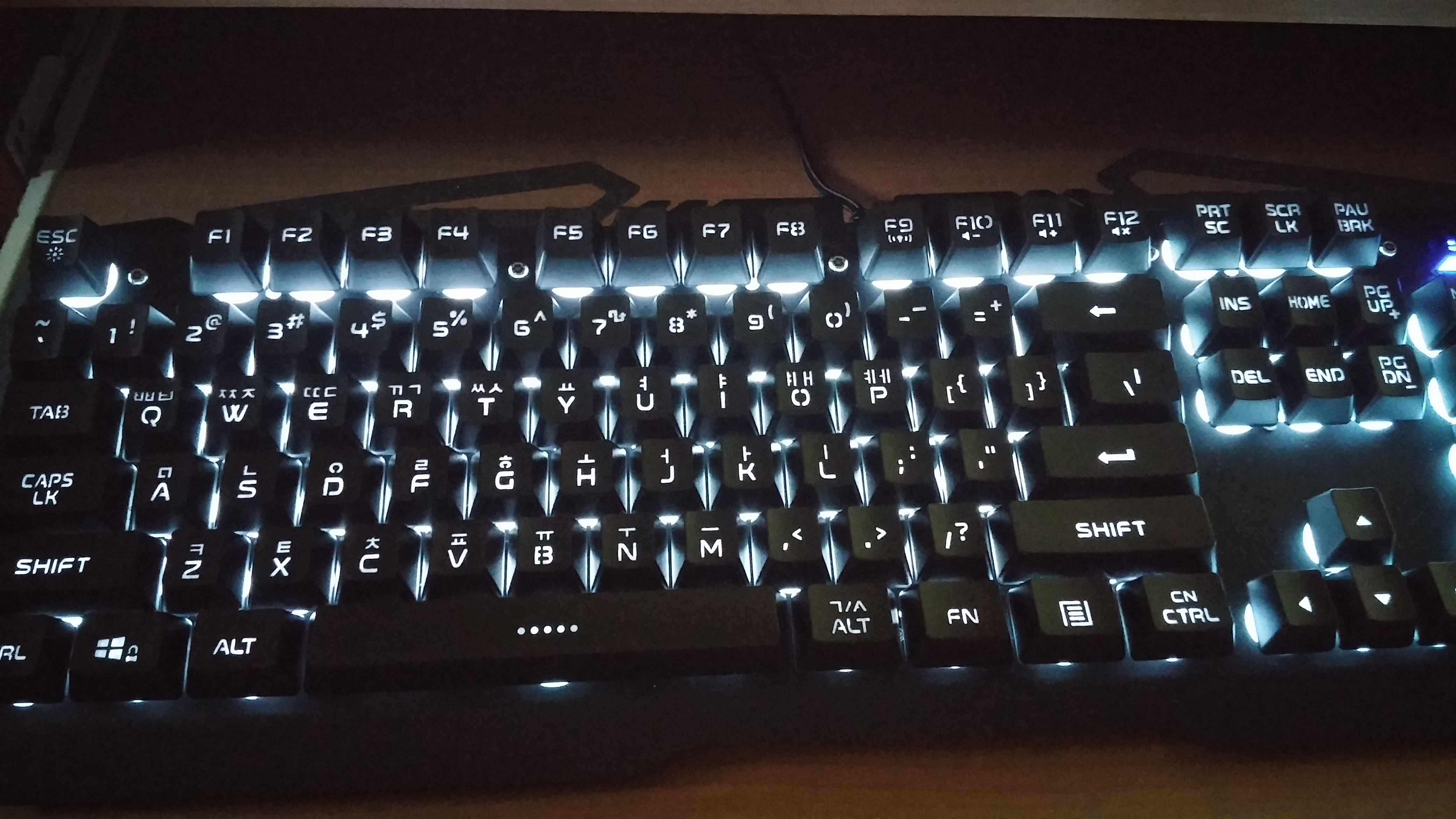 띵조 요번에 키보드를 바꿔봤습니다.(싼것) [애니] 작성일시 : 2016. 08. 30 (20:15) 조회 : 2,534 / 댓글 : 6 야행성(?)이라 그런지 그 전에 쓰던 키보드가 안보이더군요...그래서 요참에 LED 달린 키보드를 샀는데, 기계식은 최저가 5~6만이고...그냥 싼걸로 샀습니다.개인적으로는 엄청 만족이에요!그 전에 쓰던 키보드보다 누르는 감도 좋고 소리도 적고...ㅎㅎ단일 조명 색은 7가지네요~파랑/초록/빨강/연보라/연노랑/청록/흰색 4추천 글쓰기스크랩 신고
