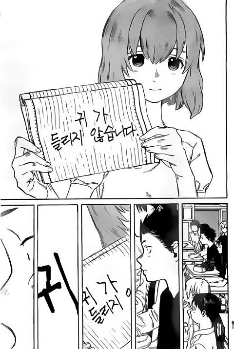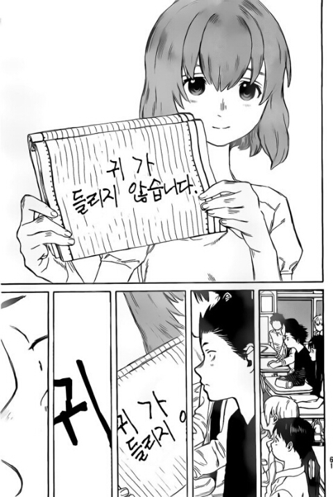 타카후지 카코 목소리의형태~애니화라니!! [애니] 작성일시 : 2014. 11. 17 (21:56) 조회 : 4,188 / 댓글 : 15 대충 줄거리는 거의 들을수 없는 청각 장애인 소녀와 그녀를 괴롭힌 소년의 이야기 인데요 어린시절 소년은 전학온 귀머거리 소녀를 왕따시키다가 어느순간부터 친구들에게 역으로 왕따를 당하는데요 훗날 소녀를 찾아가 사과를 하면서 이야기가 시작되는데요~랄까 이게 애니화라니!!!이건 무조건 봐야됩니다.ㄴㄴㄴㄴㄴㅇ ㅇ어린시절 소년은 전학온 귀머거리 소녀를 왕따시키다가 어느순간부터 친구들에게 역으로 왕따를 당하는데요 훗날 소녀를 찾아가 사과를 하면서 이야기가 시작됩니다 개인적으로 완결만화 말고는 잘 안보는데요(연재중은 기다리는게 고통ㅠ) 그래도 한번 보기시작하면 끊을수 없다는! 0추천 글쓰기스크랩 신고