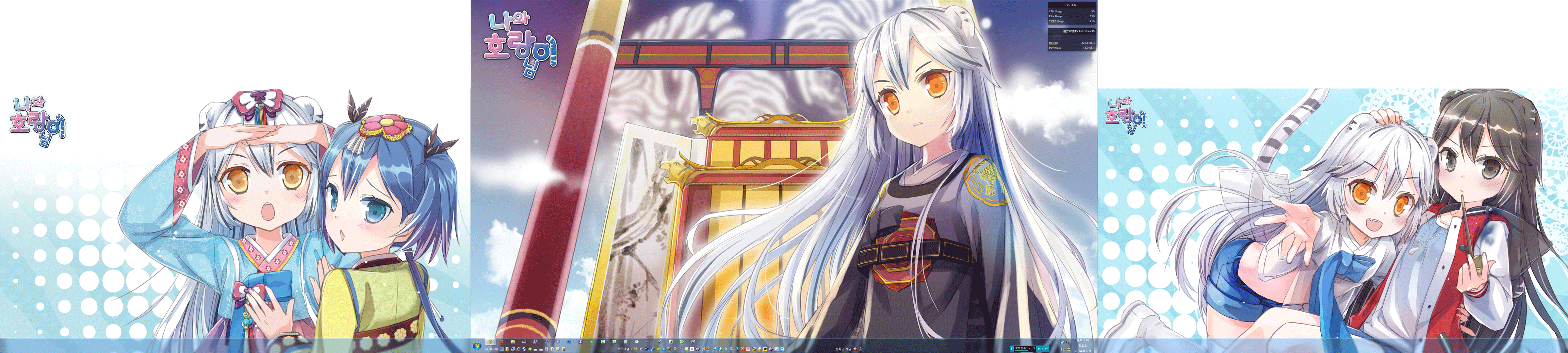 여리니 트리플 모니터 구성후 내 배경화면 [애니] 작성일시 : 2014. 08. 09 (15:10) 조회 : 5,546 / 댓글 : 0 전체 배경이미지좌측 모니터 배경화면 (해상도 1920 * 1080)중간 모니터 배경화면 (해상도 2560 * 1440)우측 모니터 배경화면 (해상도 1920 * 1080)제 배경화면 입니다.주 모니터 해상도는 QHD 모니터라 해상도가 높네요...해상도가 높은만큼 포토샵, 베가스 작업할때 편하네요....좌 우측 모니터는 서브 모니터로 포토샵 작업이라든지 베가스 작업 할때 폴더 창띄워놓거나 인터넷 창 켜놓습니다. 0추천 글쓰기스크랩 신고