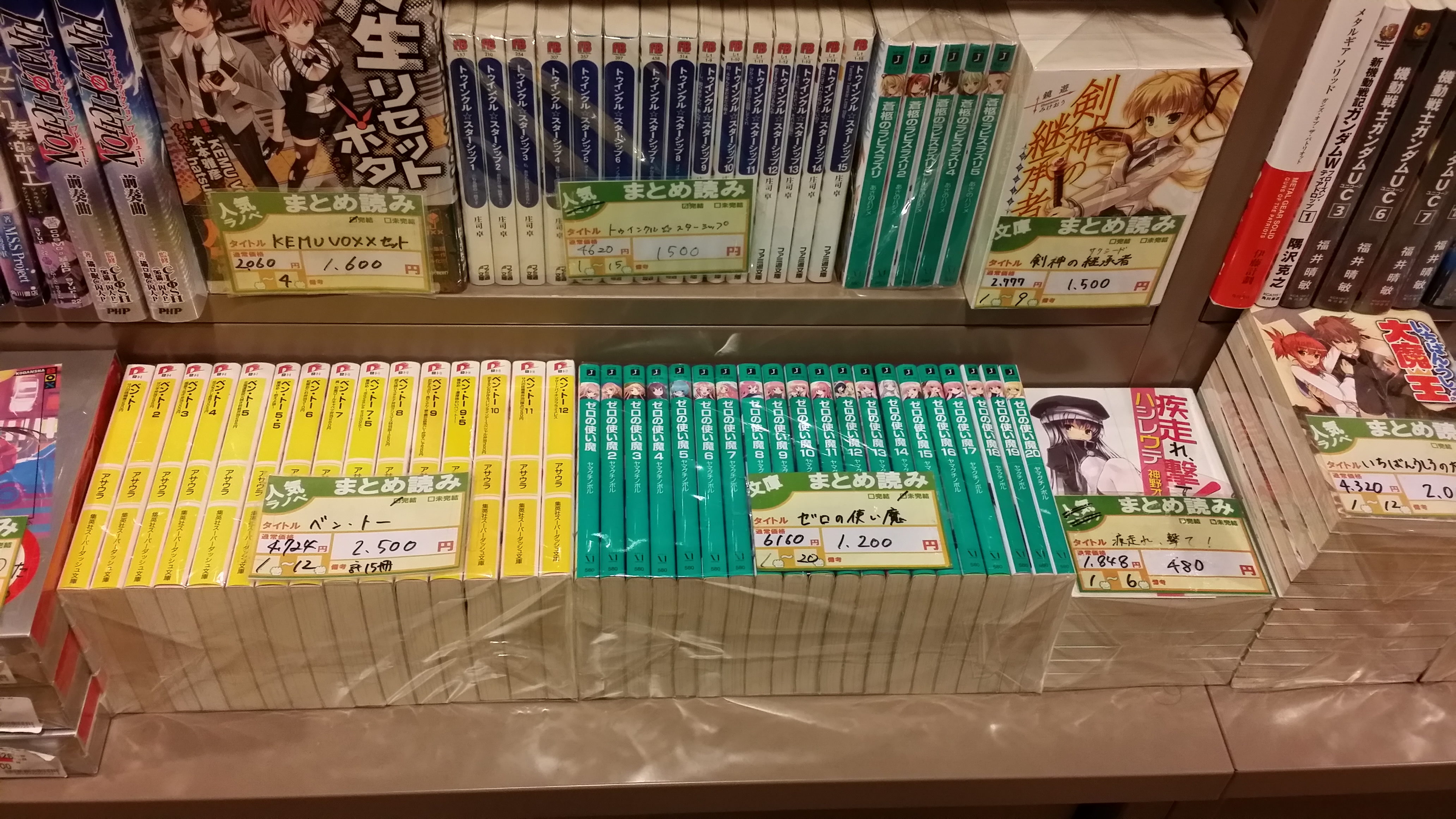 보세요! 제로의 사역마 같은 경우는 1권부터 20권까지 1200엔!