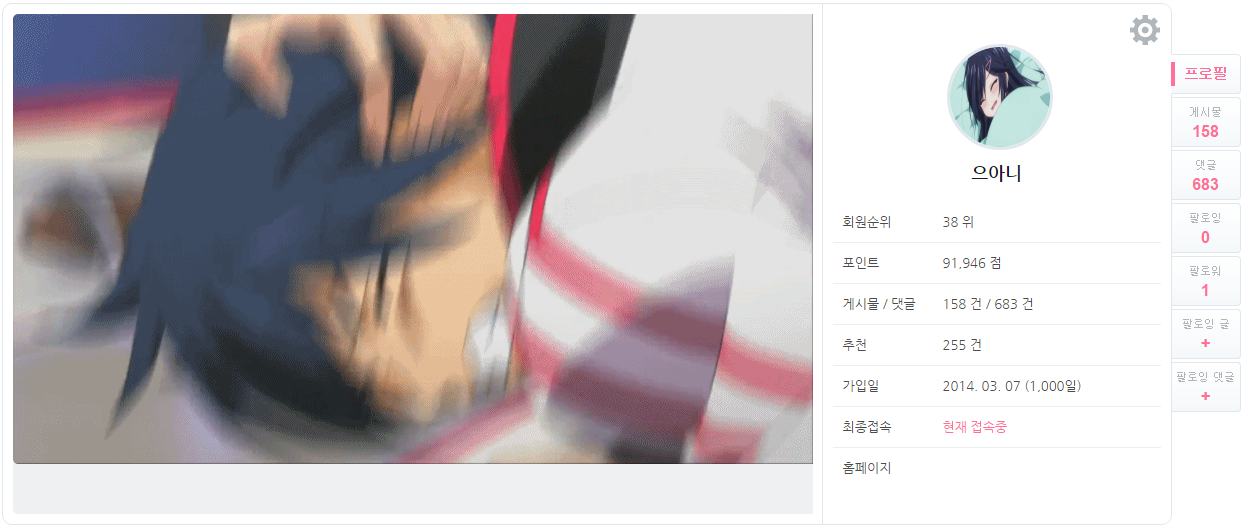 평범한송 가입일을 간만에 봤는데.... [애니] 작성일시 : 2016. 12. 01 (00:16) 조회 : 2,362 / 댓글 : 4 재작년 애니메이션 정보 찾다가 우연히 알게 되서 가입을 했는데 가입한지 벌써 2년이나 됬군요.그 때 온나다 가입만 하고 활동은 안했는데 여름 때 7월부터 온나다 활동을 시작했던 기억이 나군요. 1추천 글쓰기스크랩 신고