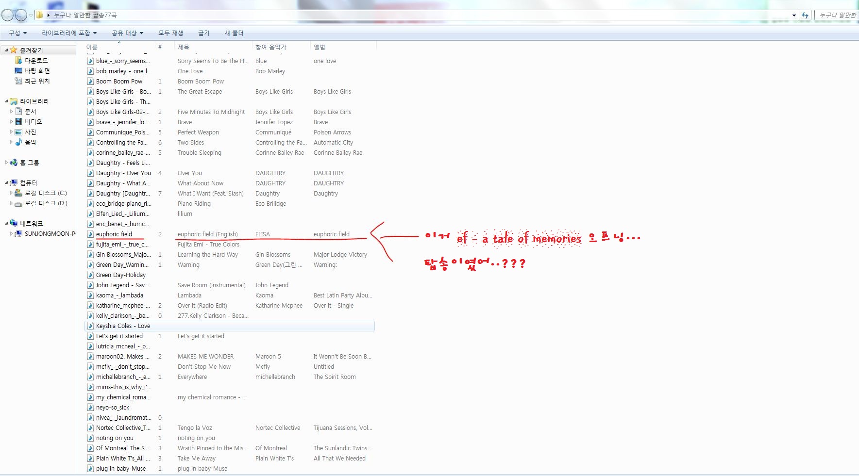딸기 누구나 알만한 팝송77가지 다운받았더니.. [애니] 작성일시 : 2011. 10. 03 (19:25) 조회 : 4,240 / 댓글 : 5 팝송 다운받았더니 일본애니 오프닝떳내 ㅋㅋㅋㅋ 0추천 글쓰기스크랩 신고