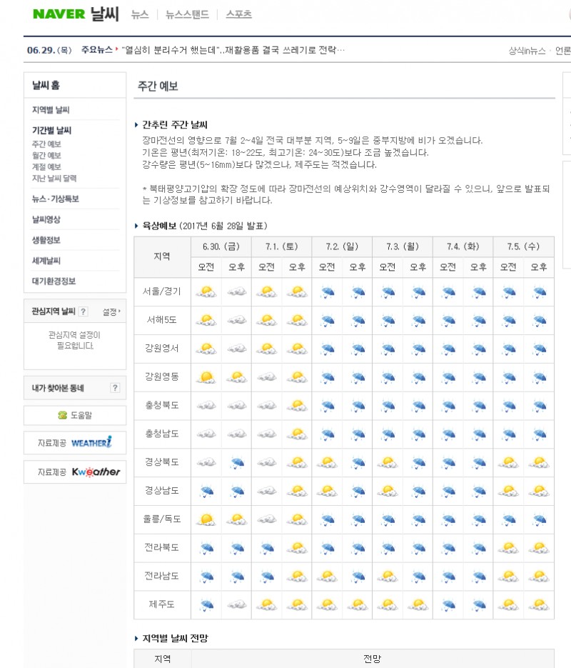 일요일부터 비가 많이 온다네요!!