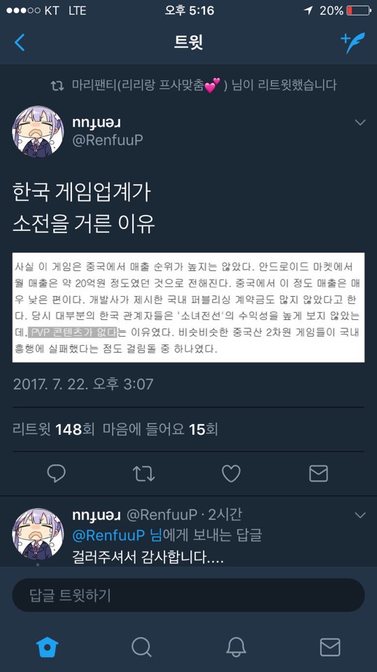 띵조 한국 게임 업계가 소녀전선을 거른 이유.jpg [일반] 작성일시 : 2017. 07. 22 (18:31) 조회 : 5,133 / 댓글 : 5 걸러주셔서 감사합니다 -추신-끼야아아아아아아앙!!!!3주만에 잠탱이가!!! 404소대 완성이다! 4추천 글쓰기스크랩 신고