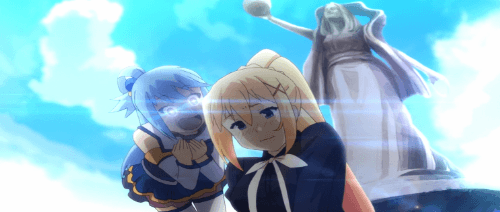 카즈마는 그만두라고 했지만 자신의 신도들을 위해서.. 계속해서 정화를 하는 모습에.. 아쿠아의 상냥한 마음씨를 느낄 수 있었고 ..