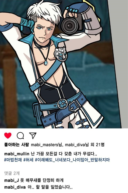 므항항 (펌) 마비노기 에아렌 등 인스타컨셉?? [일반] 작성일시 : 2017. 08. 01 (16:02) 조회 : 4,427 / 댓글 : 0 마비노기 페이스북에 인스타 컨셉으로 올라왔던데 긩고토리님 작품이라는데 느낌있게 잘그리셨던 ㅎㅎ간간히 마비노기 소식 접할겸 들어가보는데저번에 올라온 에아렌 드로우홀릭님의 작품도 그렇고매번 괜찮은 작품들 올라와주니 보는 눈이 즐겁네요 제로즈나 에아렌이 인스타그램을한다면 이런 느낌일까요 ㅋㅋ?셀카 느낌 작살나네요 ㅡㅡㅋㅋ 0추천 글쓰기스크랩 신고