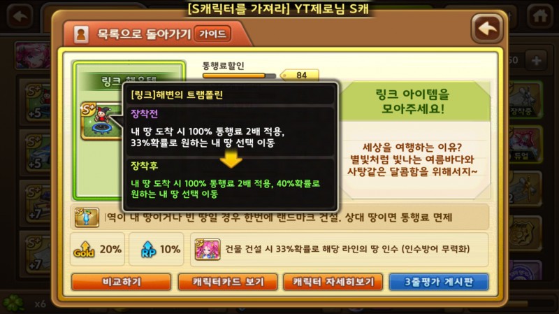 링크 캐릭은 전용 링크행템이잇는데 그걸 껴주면 능치 효과가 상승.
