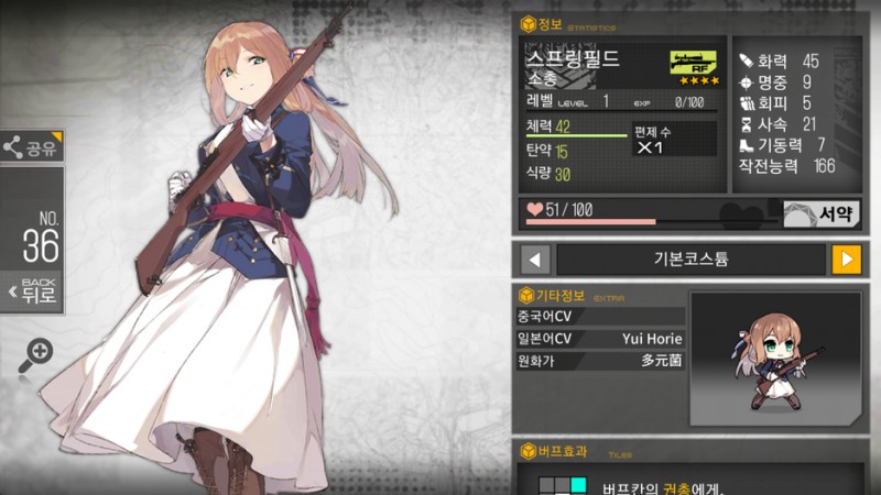 그리고 소녀전선에서 몇 없는 전용 장비를 보유한 인형이기도 합니다.