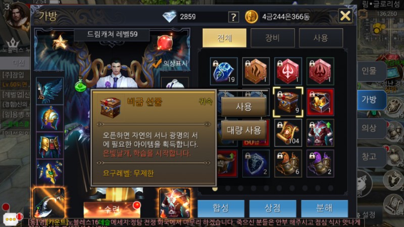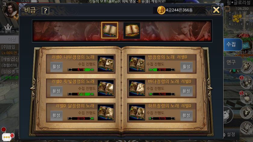새 컨텐츠인 성물 + 천계 보물찾기, 비급 + 이계 비경, 천체도 등등...